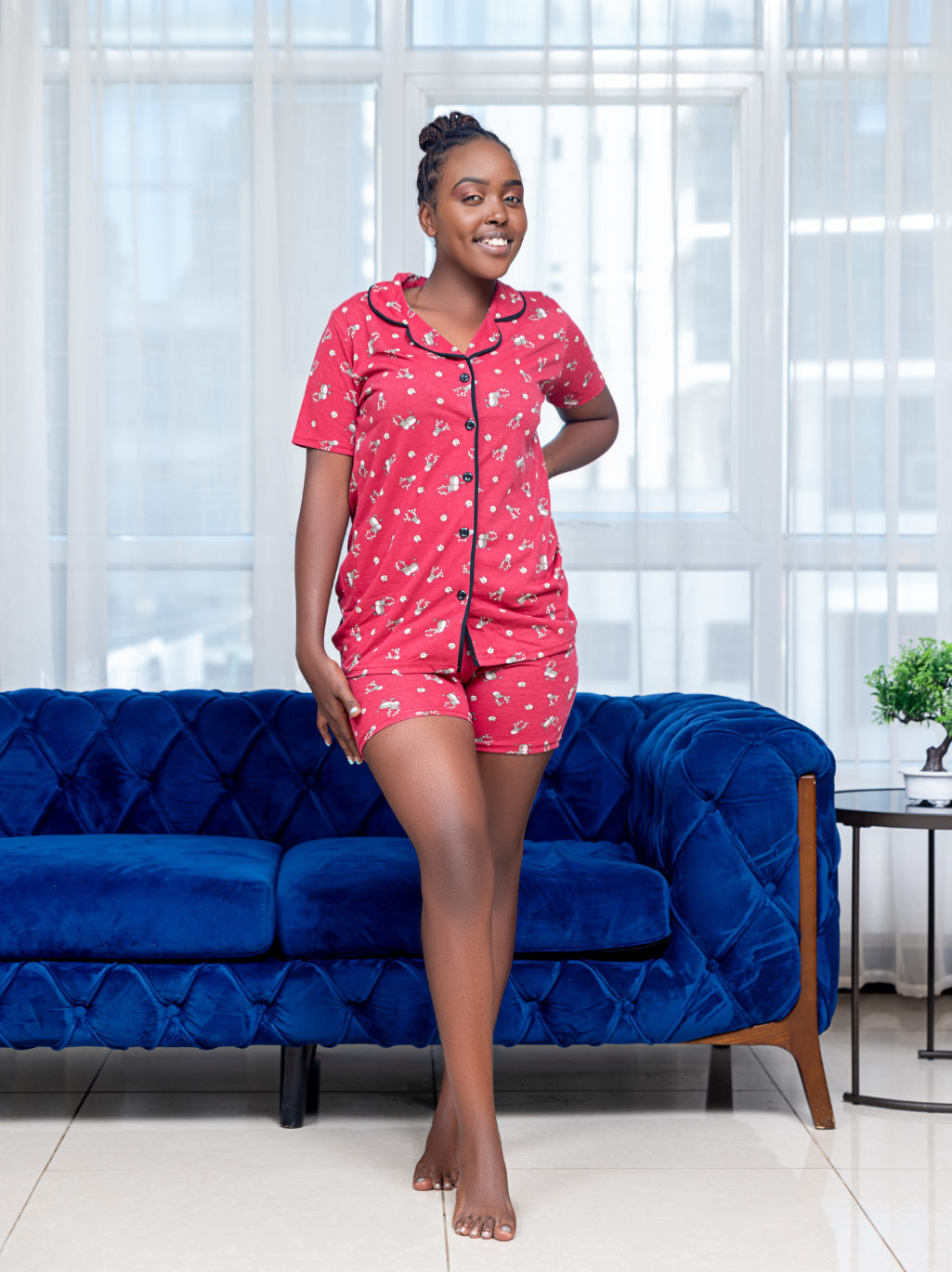 A deep maroon mood for your slow mornings and sweet evenings. This cotton shorts set is ultra-soft, breathable, and designed with a playful print that brings just the right dose of joy. The contrast piping gives it that polished edge, while the relaxed fit keeps things comfy. Whether you're sipping tea or scrolling in bed, this set is your gentle hug of comfort.